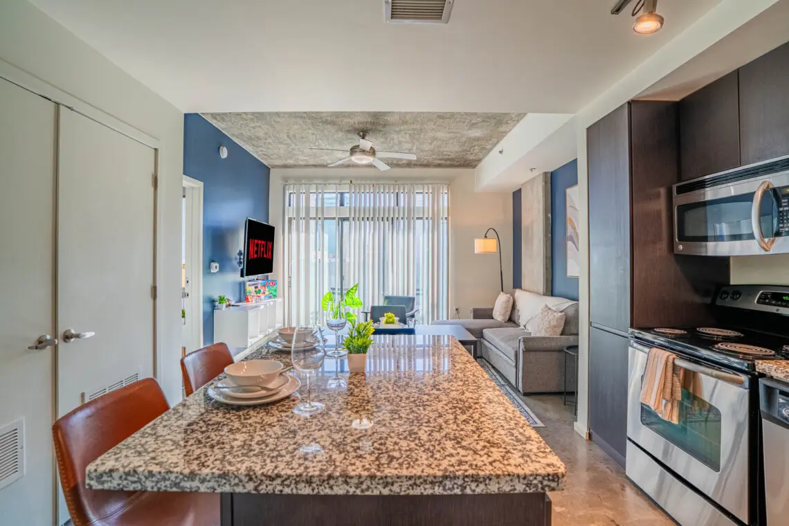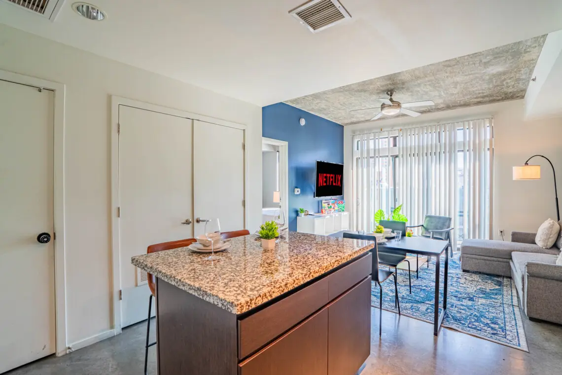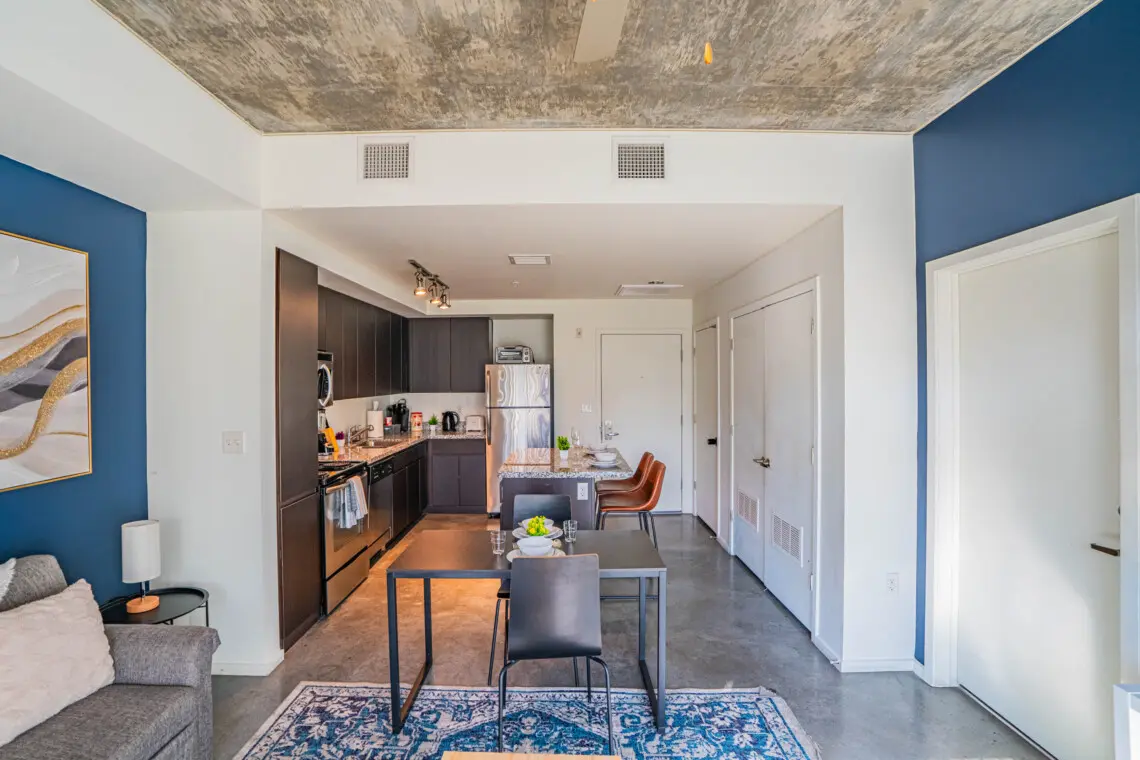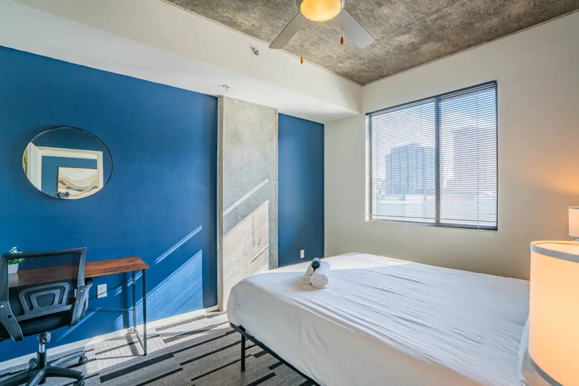 Experience the best of Downtown Phoenix from this modern, thoughtfully designed condo in the vibrant Roosevelt Row Arts District. Walk to trendy restaurants, coffee shops, nightlife, and the Phoenix Convention Center. Ideal for business trips or weekend escapes with high speed WiFi, a comfortable workspace, smart TV, full kitchen, and private balcony with city views. Free parking and quick access to Sky Harbor Airport make your stay easy and stress free.